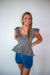 - Ruffle Sleeve Checkered Blouse with back zipper closure!
