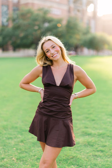 View full detailsDrop Waist V Neck Mini Dress w/ side zipper closure! Double lined - 65% Cotton, 32% Nylon, 3% Spandex Runs true to size Models are both wearing a ...