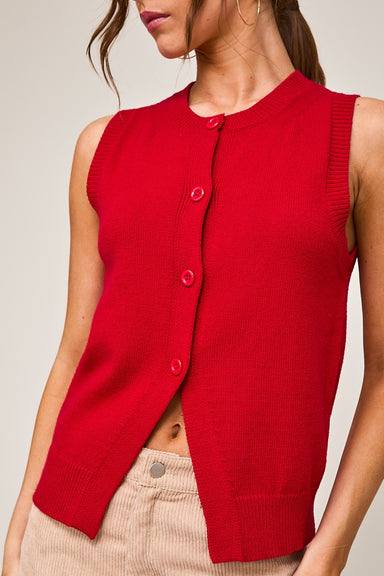 Sleeveless Button Front Sweater Top