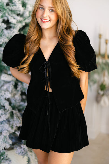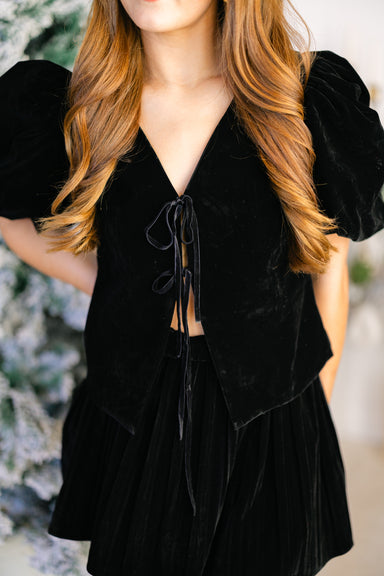 Black velvet front tie babydoll top Set is sold separately Runs true to size Model is 5'4 and is wearing a small