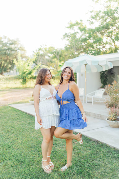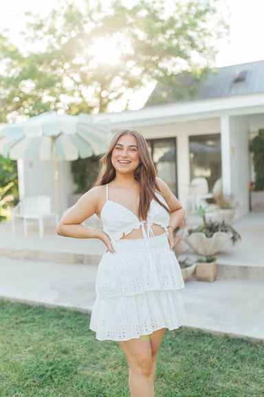 Pleated shoulder tie cami top w/ matching smocked skort! 100% cotton Runs true to size Model is 5'5 and is wearing a small